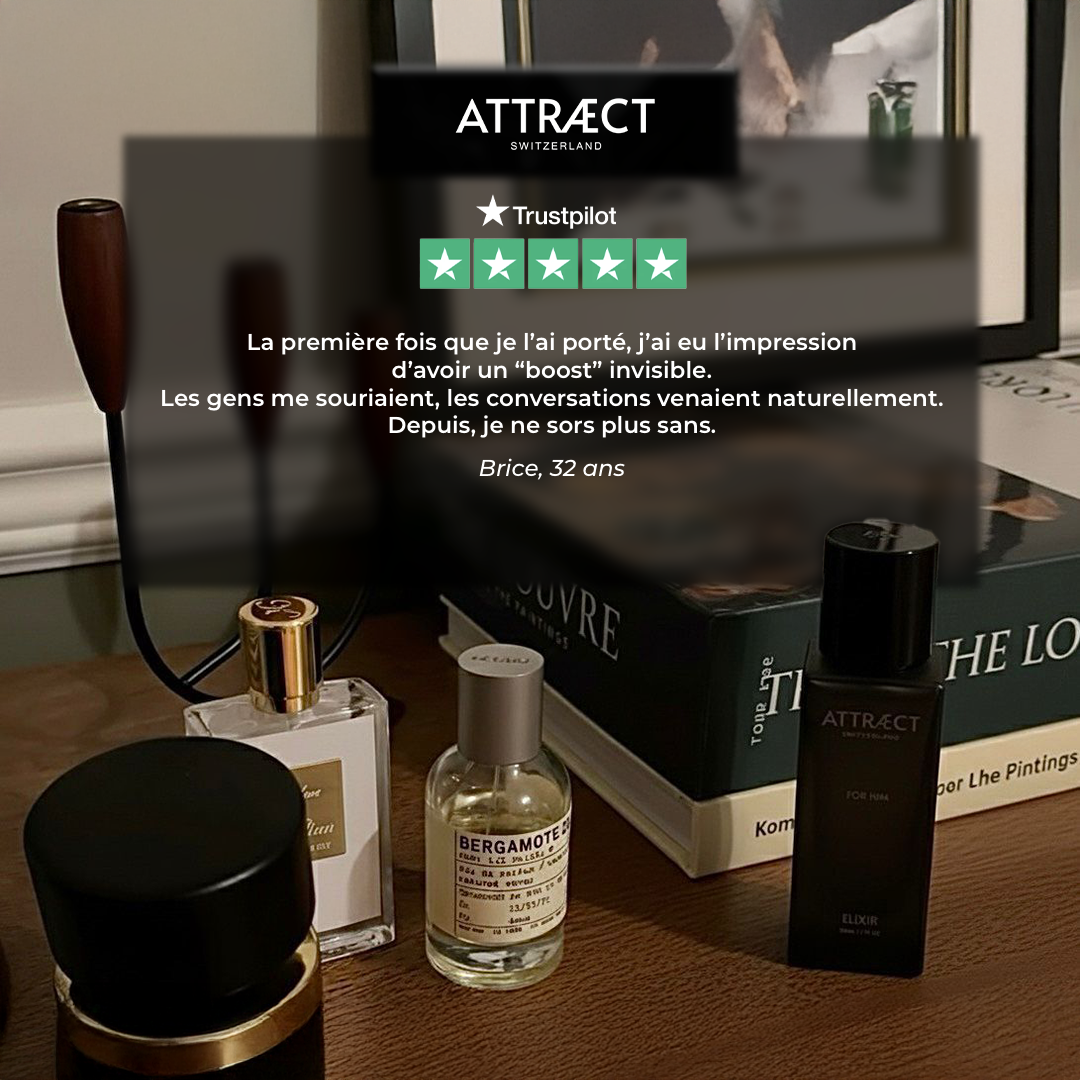 Avec 30% de concentration, Attraect n'est pas une eau de toilette qui s'évapore. C'est un extrait de parfum qui fusionne avec votre peau et laisse une signature mémorable bien après votre départ.